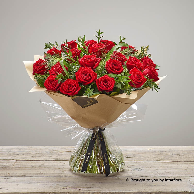 Our expert florists use the finest roses - which are known for their rich red colour, large petal head and luxurious feel – and lush greenery to make the rose colour really pop. We carefully hand wrap the flowers in kraft paper and tie with luxury ribbon, making it truly spectacular when delivered to the recipient.